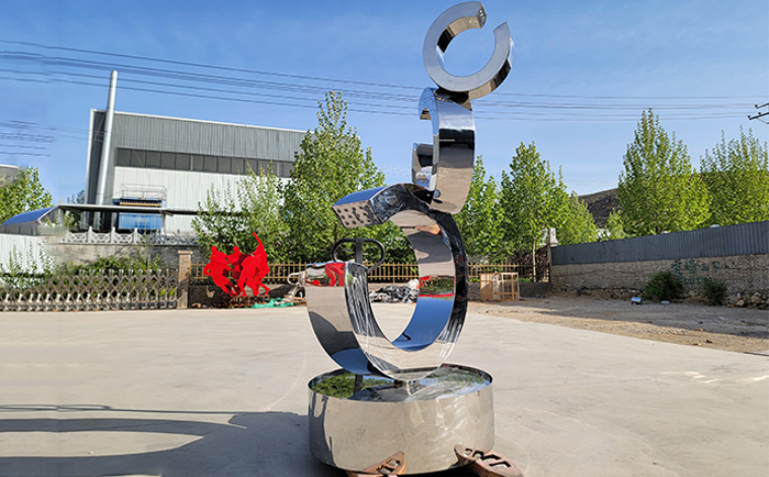 不銹鋼材質賦予了雕塑現代感與時尚氣息,其光滑的表面能完美地反射周圍的環境與光影,當噴泉開啟,水流與光影相互交織,在不同的時段、不同的天氣條件下,呈現出千變萬化的視覺效果。白天,陽光灑在水面與雕塑上,閃耀著金色的光芒;夜晚,配合精心設計的燈光,噴泉雕塑又成為夜空中最璀璨的存在,為城市的夜景增添了一份浪漫與神秘。